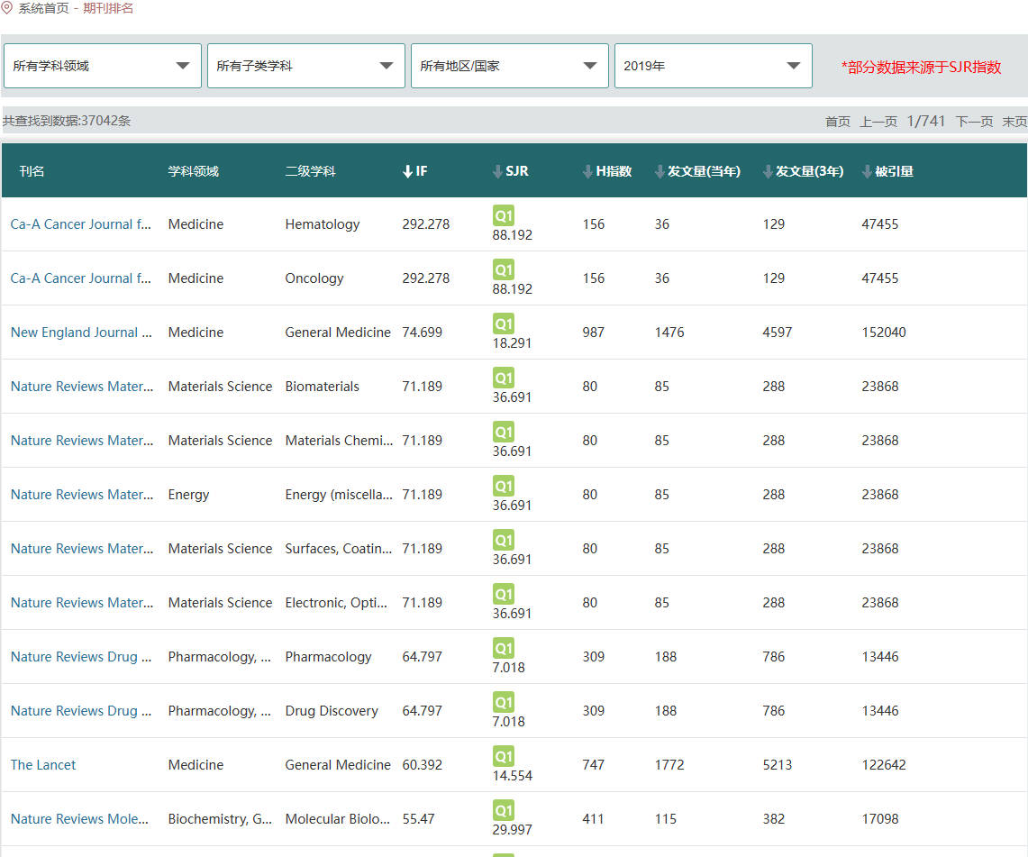 通过对学科领域,国家和年份筛选,找到相应符合条件的期刊,再根据影响因子、SJC,H指数,发文量,被引量等进行排序,找到排名靠前的期刊。